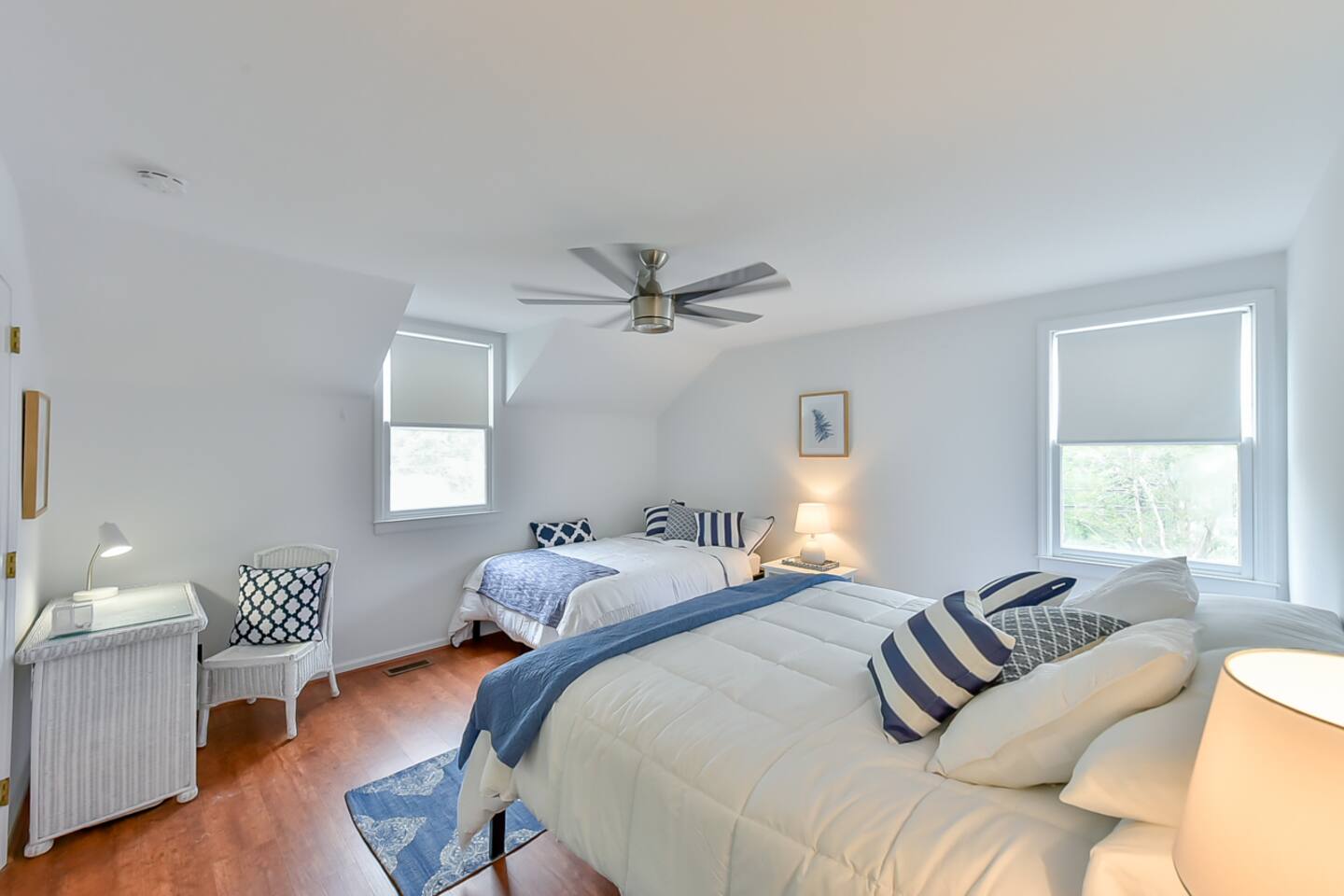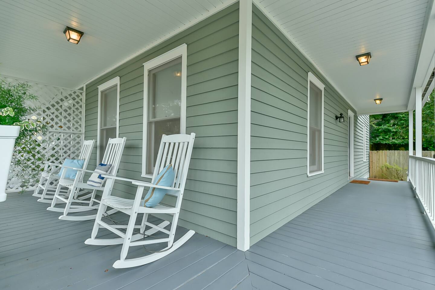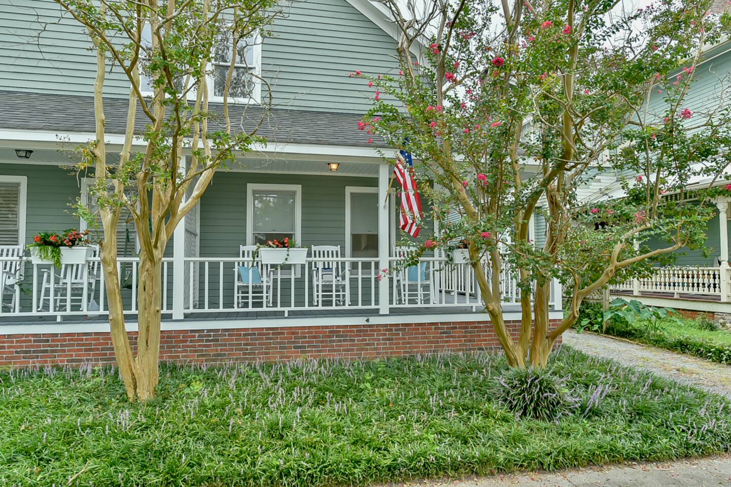 This property is a private full home as one side of a side-by-side duplex, offering rare amenities for Downtown Wilmington including great parking and driveway, private fenced-in backyard area with adirondack chairs, wraparound front porch with rockers. You will not find many properties or rentals downtown with amenities like this. On the main floor, walk in to a refurbished, fresh, and clean space designed for comfort and relaxation. Brand new kitchen remodel with coffee bar, cooking necessities, door to access the back yard and more. Comfortable living room with new smart TV offering the most popular streaming services and select cable channels. Fast >200mbps WiFi. Clean and fresh powder room. Upstairs has 2 large bedrooms, one featuring a comfortable queen bed, and the second with a large king bed and double bed. Perfect fit for a family, group of couples or group of friends. Full bathroom/shower upstairs. Impressive new shower renovation. The biggest attraction to this home is the level of comfort/amenities offered in a full home close to downtown. Located on Dock St, this is as central as it gets. Walk 3-4 blocks to downtown, and one more to the Riverwalk. Incredible location for a Downtown Wilmington visit. You will struggle to find a reason to drive or Uber anywhere during a stay here. Downtown Wilmington is special in that it offers a rich history, fun vibe and culture - but is also a coastal town. A 15-20 minute drive gets you to the best beaches NC has to offer, including Wrightsville Beach and Carolina Beach. There is no shortage of fun activities!