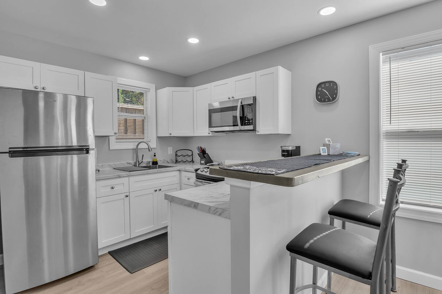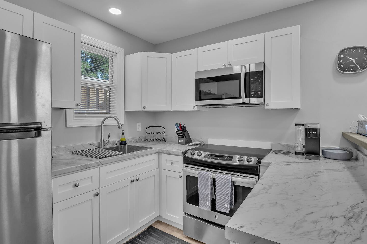 Newly renovated 2-bedroom, 1-bathroom guest house—the perfect low-maintenance landing pad for your coastal escape or long term stay. This single-level home features a bright, open-concept living area that maximizes space and flow. The full renovation means everything is brand new, clean, and designed for easy enjoyment. The home is designed to maximize space while maintaining comfort and usability. The kitchen is large for the space, providing plenty of room to cook, prepare meals, and entertain. The living room blends into the kitchen creating an open atmosphere and comfortable environment. Down the hallway you will find 2 bedrooms on either side, along with a clean and large full bathroom.