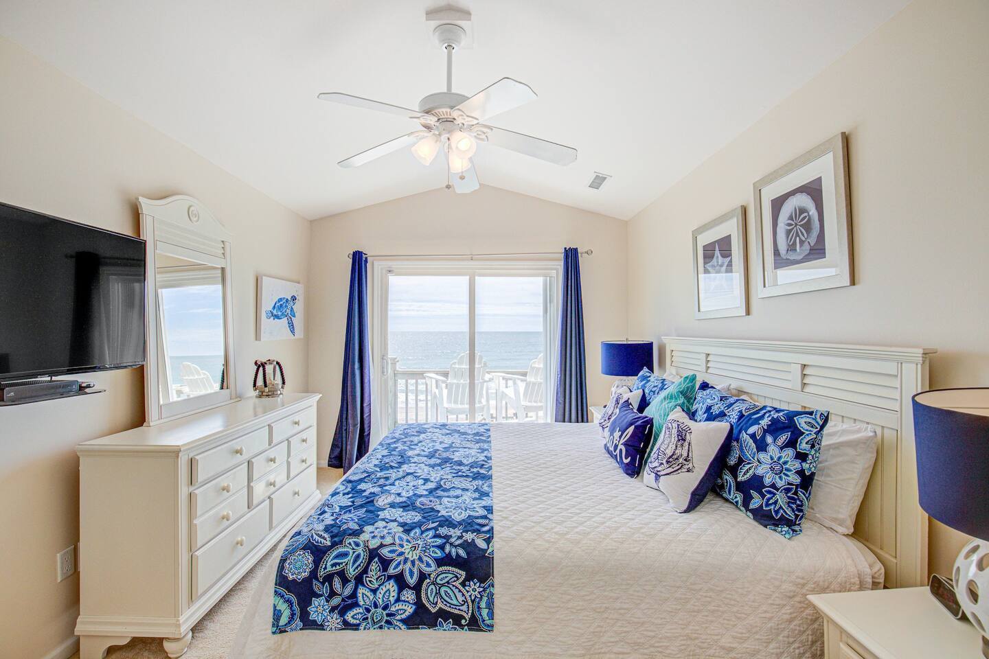 Best in class location within the "S-CURVE" of Surf City, enjoy this OCEAN FRONT spacious 4 bed/4 bath home. Sleeps 12. Just steps down a private walkway from large double story decks to the serene beach. Clean, airy, spacious. Stunning water views throughout the home. Fully stocked with everything you need to enjoy a large family gathering, romantic getaway, or work from home staycation. Plenty of activities for all ages, garage game room, a collection of beach items, smart TVs, stocked kitchen