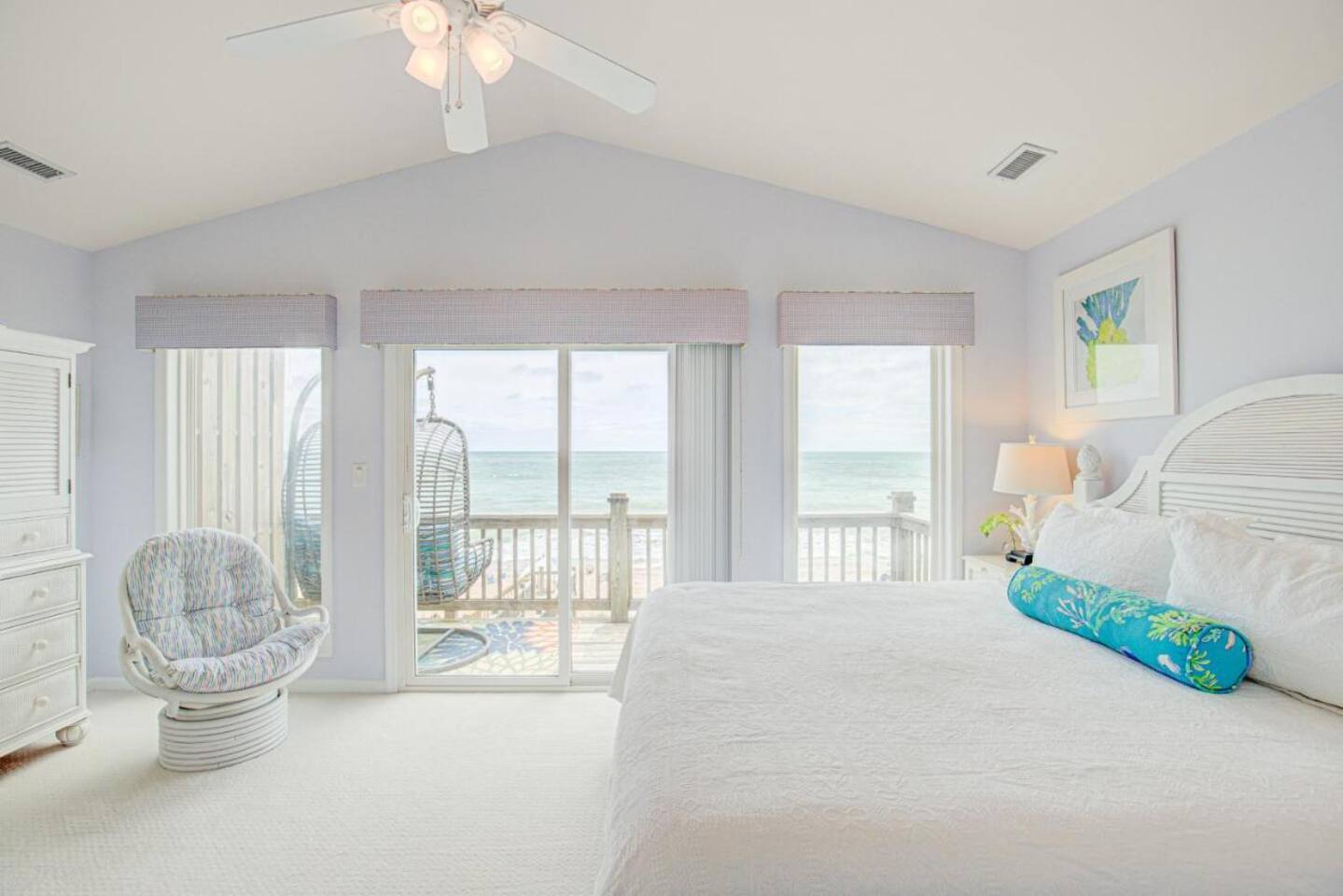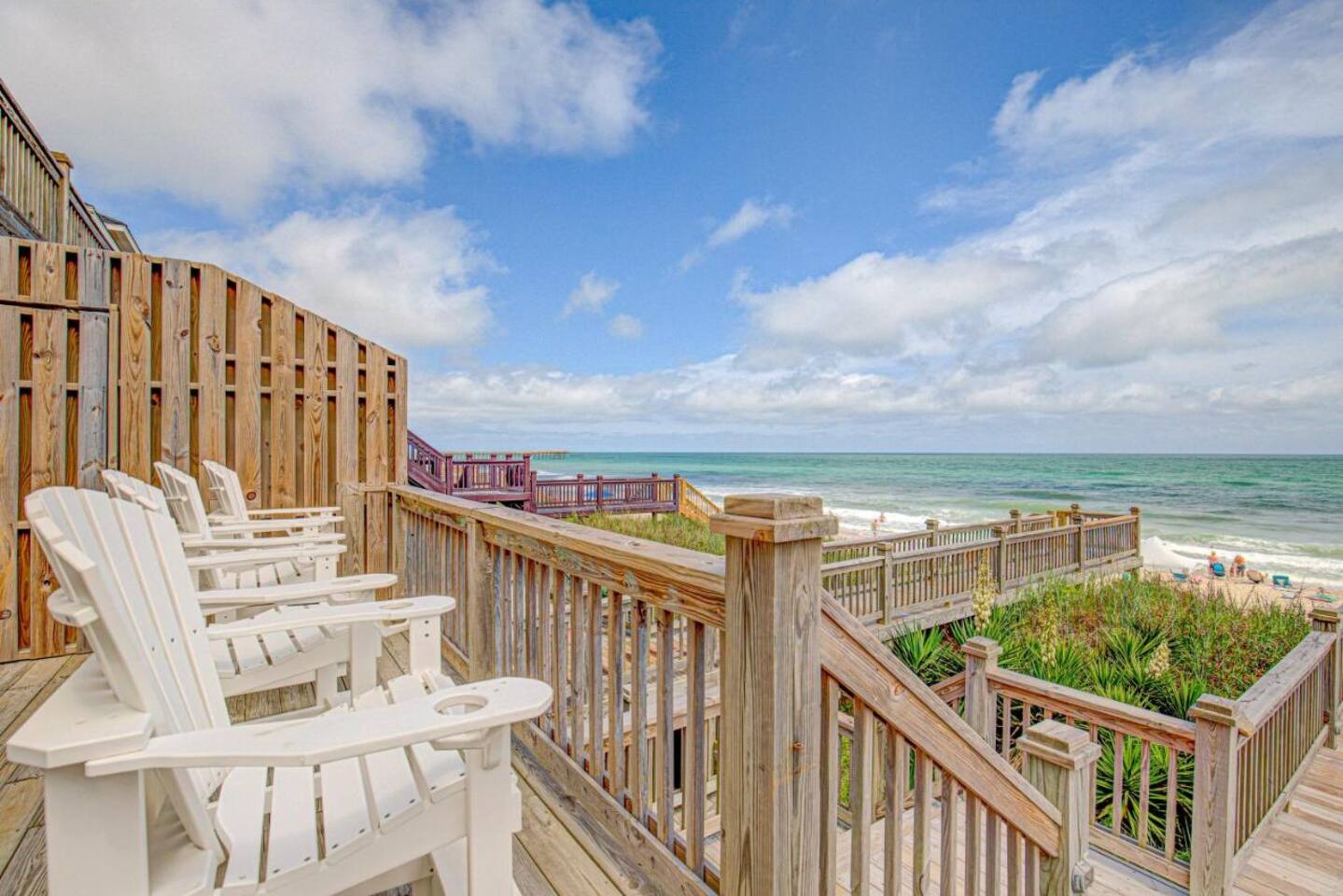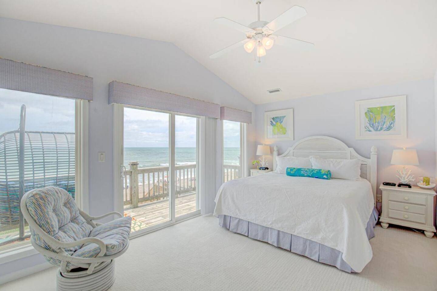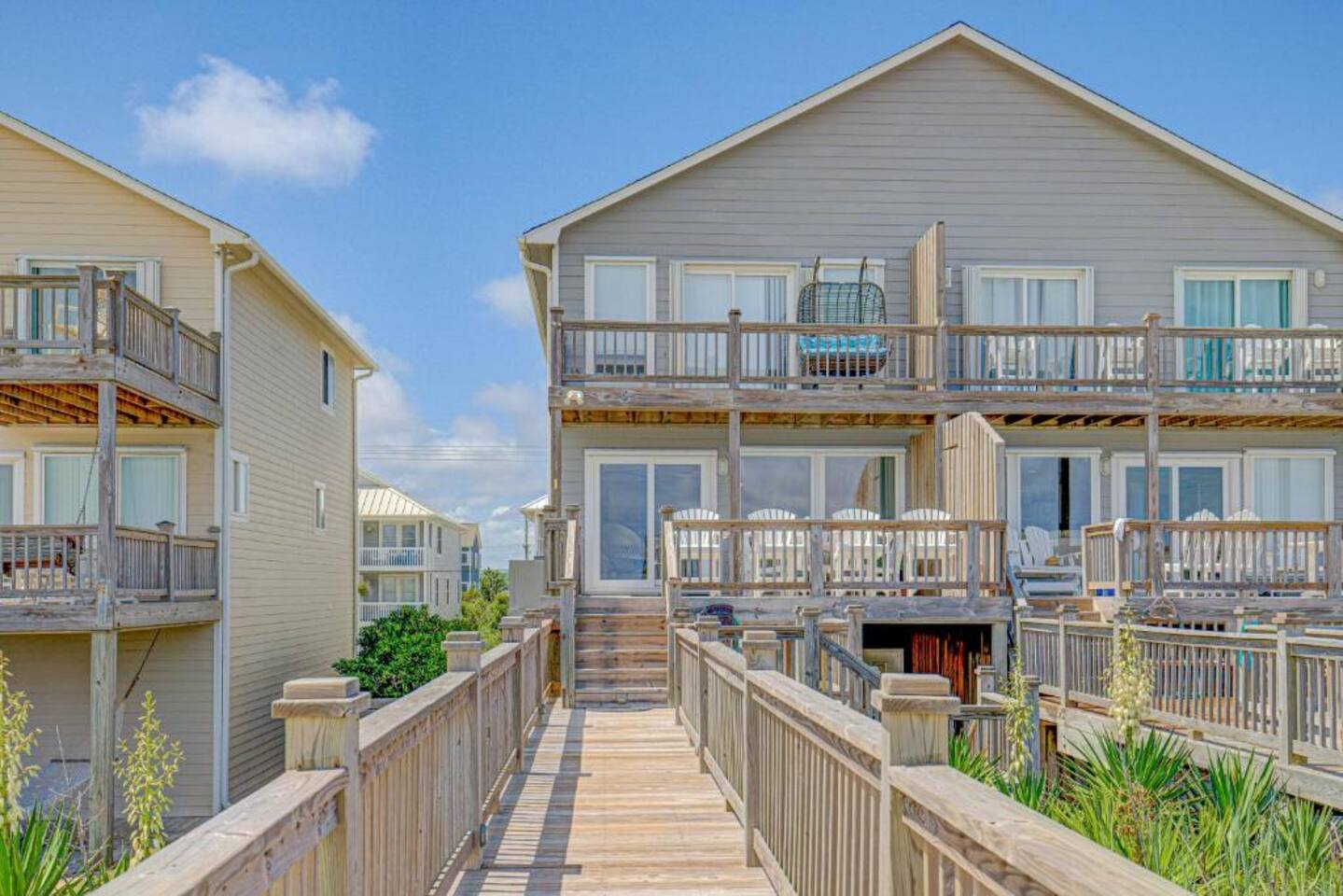 Best in class location within the "S-CURVE" of Surf City, enjoy this OCEAN FRONT spacious 4 bed/3 bath home. Sleeps 8. Just steps down a private walkway from large double story decks to the serene beach. Clean, airy, spacious. Stunning water views throughout the home. Fully stocked with everything you need to enjoy a large family gathering, romantic getaway, or work from home staycation. Plenty of activities for all ages, garage game room, a collection of beach items, smart TVs, stocked kitchen