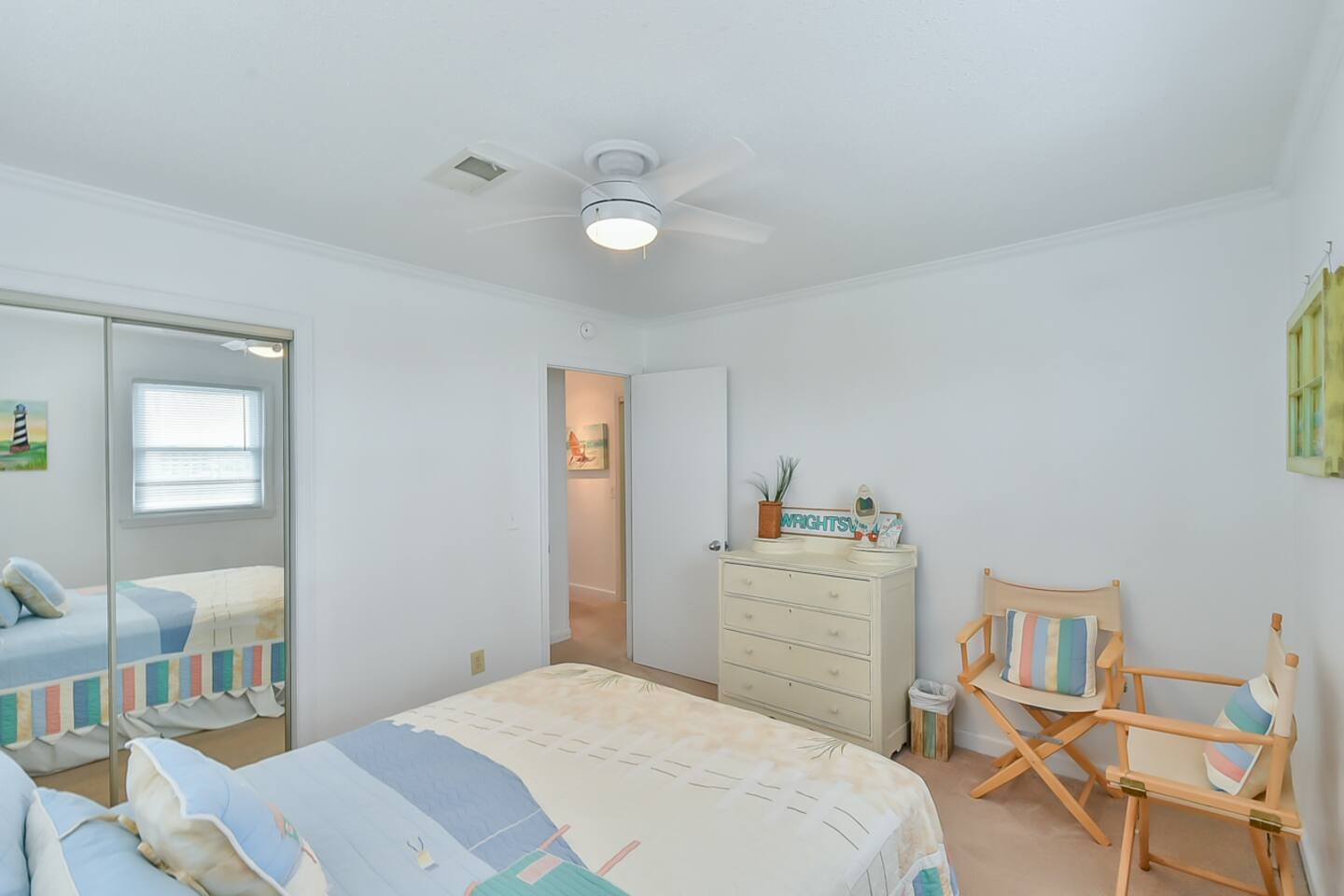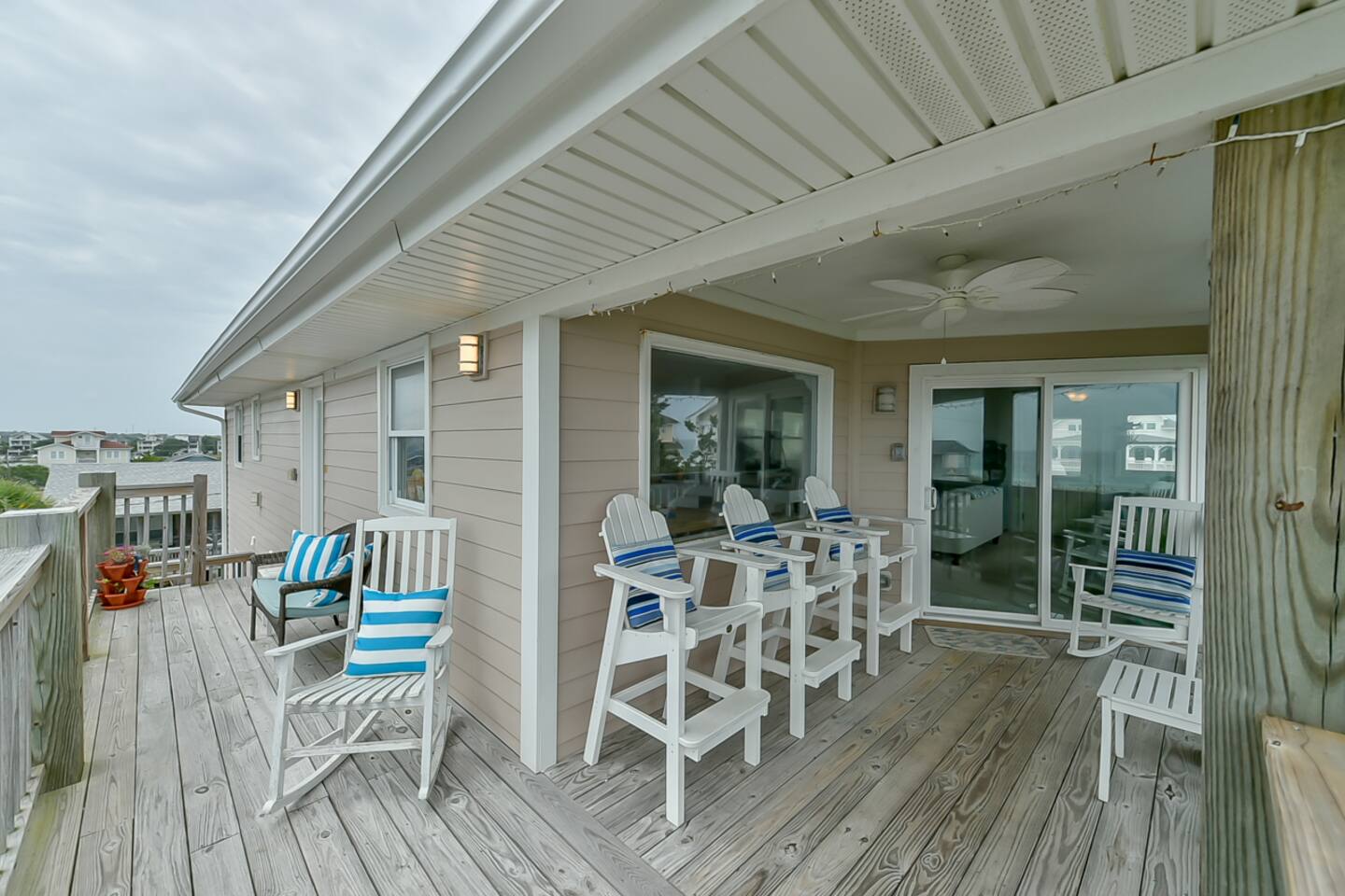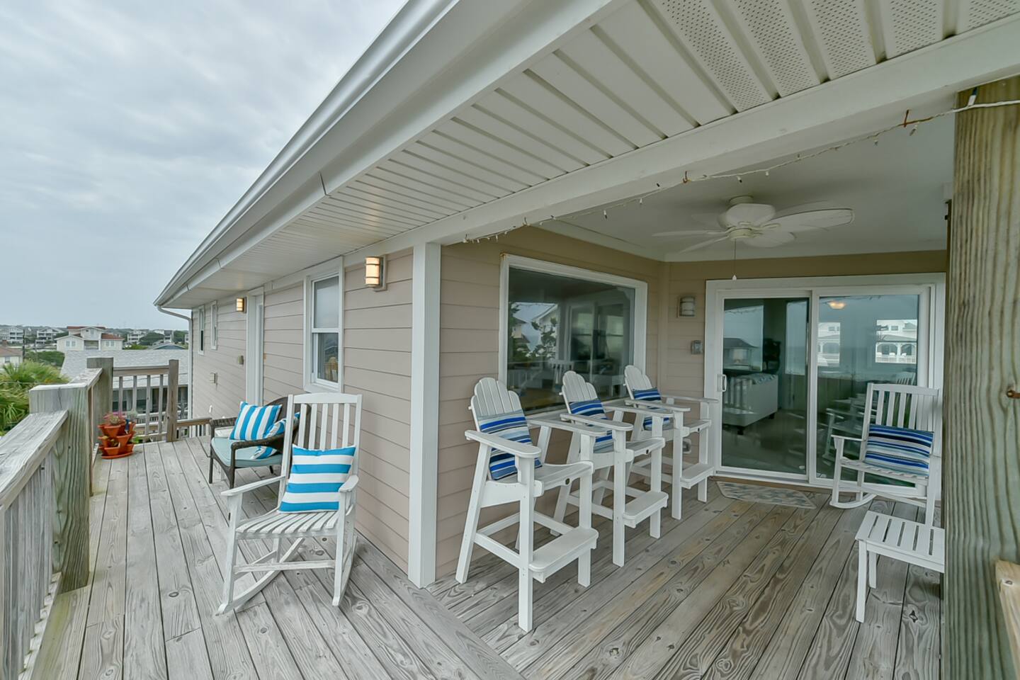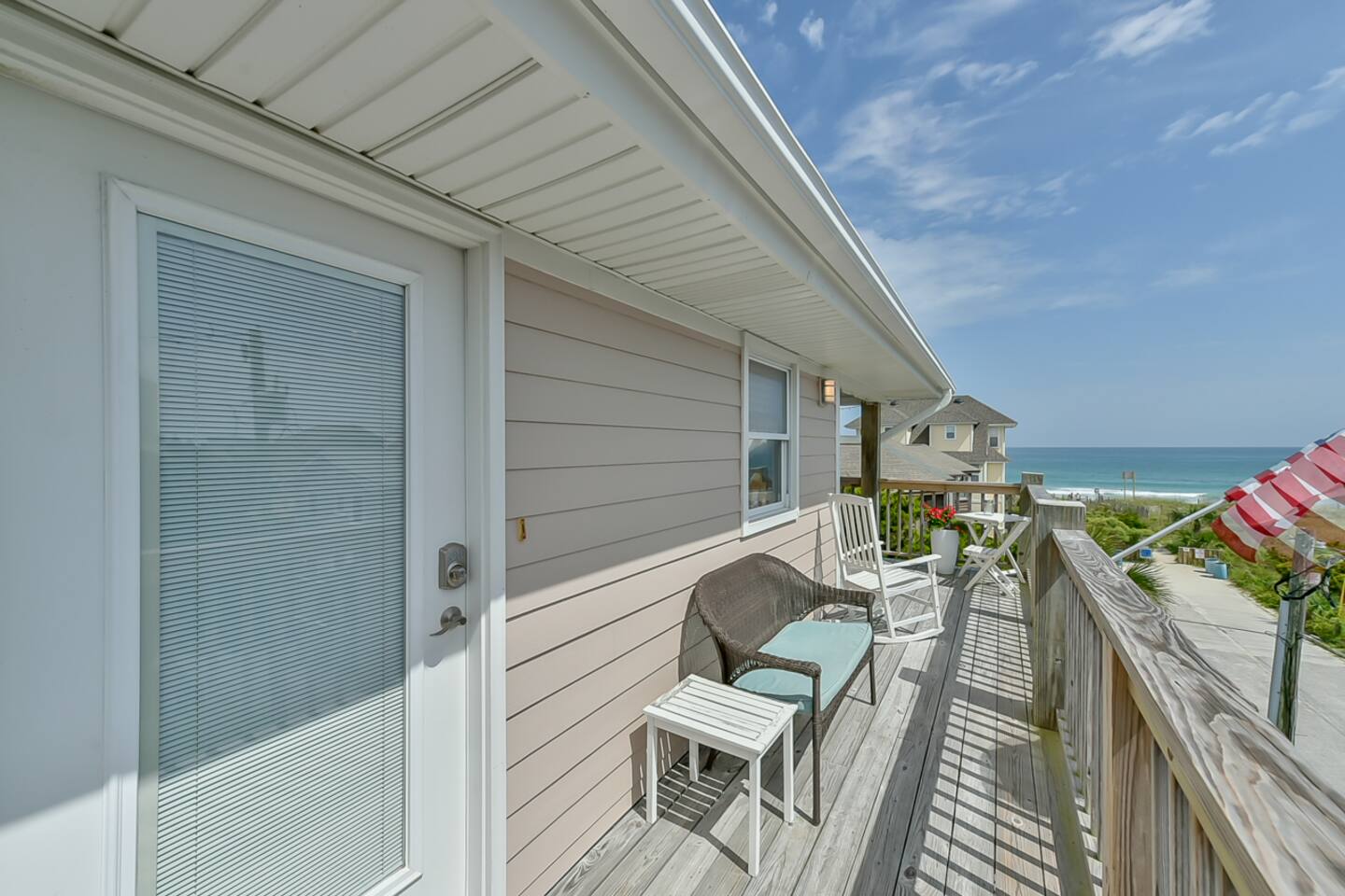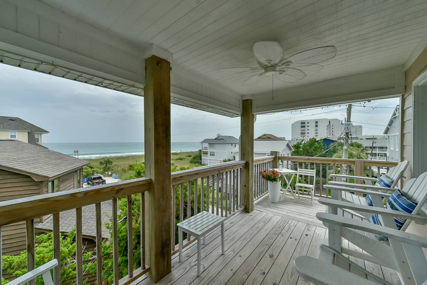 Our home's lot is the highest point on Wrightsville beach which allows for views of both the ocean as well as the sound. Friends call it the "Penthouse" as it takes up the entire top floor of our building. Given the height and elevation, the views are truly remarkable. Our home is located just off the main downtown Wrightsville strip with one of the more popular beach accesses just at the end of our road (~50 yards from our front door). In addition, the proximity to the main restaurants, bars, ice cream shops, local groceries, surf shops, and rental stores all within 100 yards makes this is the most convenient location on the island! We offer up to 3 parking spots for guests. Our home has one of the larger parking areas for a residential home in Wrightsville. It is shared with the 2 lower units, but we provide half of the lot marked with a "3" for our guests. Seamless entry with key-less front door code makes your arrival a breeze. The outdoor shower is refreshing and convenient, available for all guests to use, and we ask that you always rinse off your sandy feet at the hose or shower before entering the house! There are 3 well appointed bedrooms, two with queen beds and the third with a double and a bunk bed for up to 8 total guests, ideal for 2 couples with kids, a large family, or a group of friends. We offer a single memory foam mattress pad for additional sleeping arrangements. The linens are fresh, crisp, and beautifully created around coastal themes, and the pillows and mattresses are comfortable and protected with regularly updated protectors. The well stocked kitchen is ready for you to cook in, and some basics such as spices, olive oil, sugar, flour, etc are left for your use. We allow guests to use the grill - with great caution due to fire hazards - but ask that if you happen to finish the propane tank that you refill/replace it (convenience store to fill the tank is <5 minutes away). The bathrooms are stocked with some basic amenities including toilet tissue, soaps and 2 hairdryers, and there is a first aid kit in the main hallway bathroom closet. You have access to wifi and the living room TV is a smart TV with all the relevant streaming services for your convenience. You may also watch from the collection of DVDs, play games and do puzzles, or read and magazines books from our selection. Bring your personal items + some groceries and everything else is taken care of!