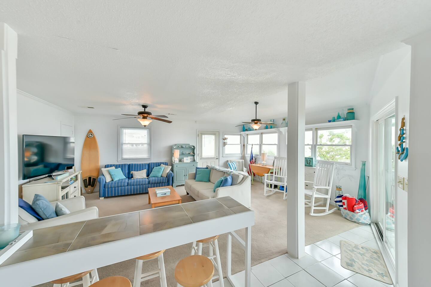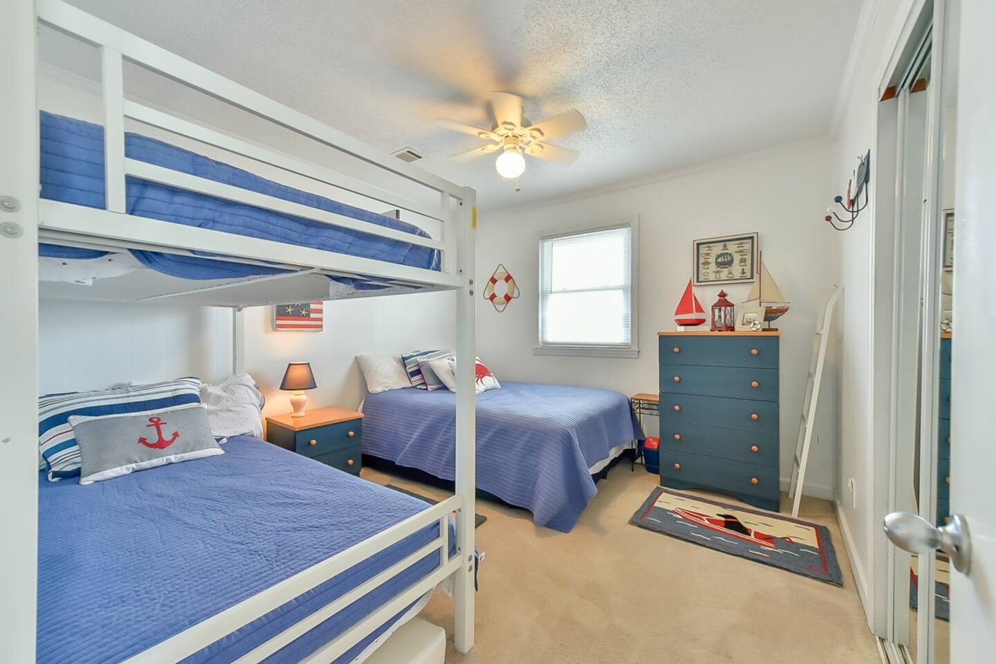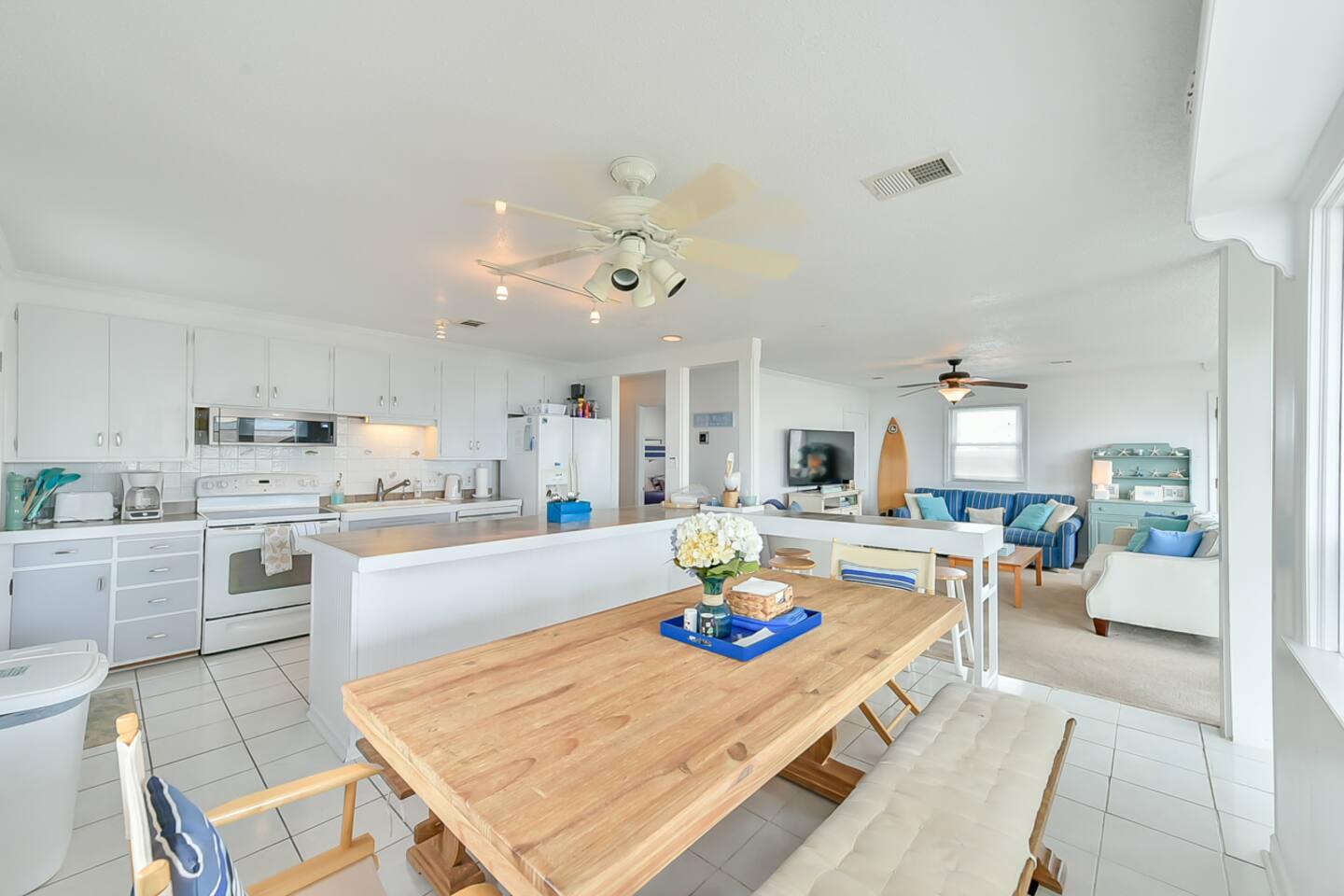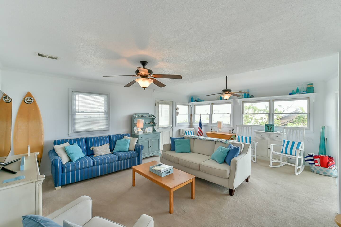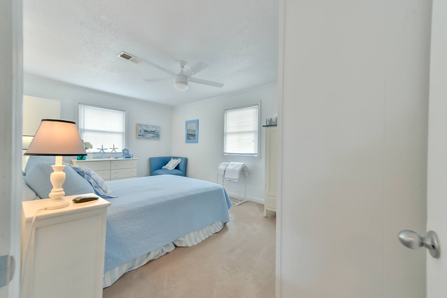Our home's lot is the highest point on Wrightsville beach which allows for views of both the ocean as well as the sound. Friends call it the "Penthouse" as it takes up the entire top floor of our building. Given the height and elevation, the views are truly remarkable. Our home is located just off the main downtown Wrightsville strip with one of the more popular beach accesses just at the end of our road (~50 yards from our front door). In addition, the proximity to the main restaurants, bars, ice cream shops, local groceries, surf shops, and rental stores all within 100 yards makes this is the most convenient location on the island! We offer up to 3 parking spots for guests. Our home has one of the larger parking areas for a residential home in Wrightsville. It is shared with the 2 lower units, but we provide half of the lot marked with a "3" for our guests. Seamless entry with key-less front door code makes your arrival a breeze. The outdoor shower is refreshing and convenient, available for all guests to use, and we ask that you always rinse off your sandy feet at the hose or shower before entering the house! There are 3 well appointed bedrooms, two with queen beds and the third with a double and a bunk bed for up to 8 total guests, ideal for 2 couples with kids, a large family, or a group of friends. We offer a single memory foam mattress pad for additional sleeping arrangements. The linens are fresh, crisp, and beautifully created around coastal themes, and the pillows and mattresses are comfortable and protected with regularly updated protectors. The well stocked kitchen is ready for you to cook in, and some basics such as spices, olive oil, sugar, flour, etc are left for your use. We allow guests to use the grill - with great caution due to fire hazards - but ask that if you happen to finish the propane tank that you refill/replace it (convenience store to fill the tank is <5 minutes away). The bathrooms are stocked with some basic amenities including toilet tissue, soaps and 2 hairdryers, and there is a first aid kit in the main hallway bathroom closet. You have access to wifi and the living room TV is a smart TV with all the relevant streaming services for your convenience. You may also watch from the collection of DVDs, play games and do puzzles, or read and magazines books from our selection. Bring your personal items + some groceries and everything else is taken care of!