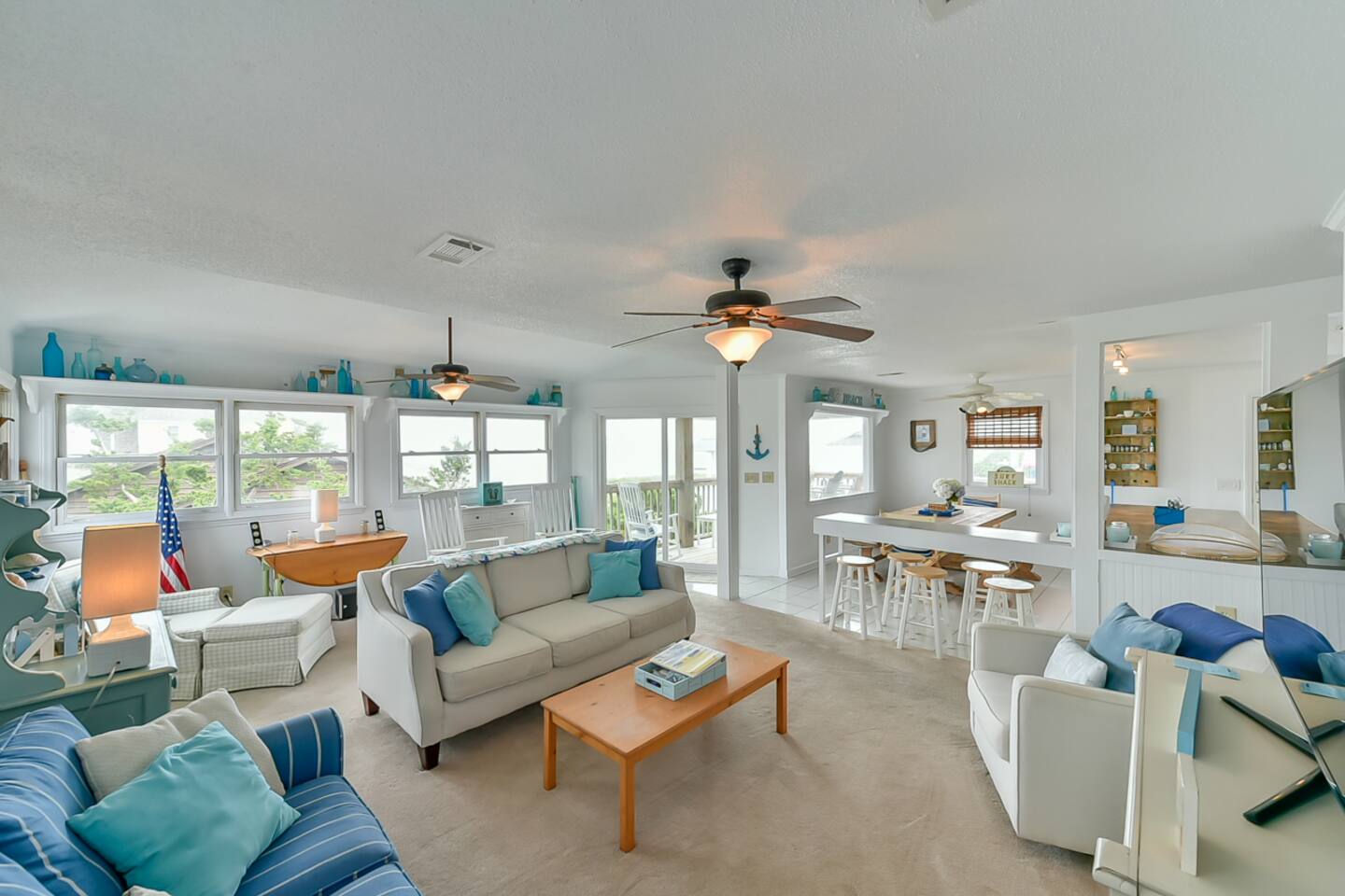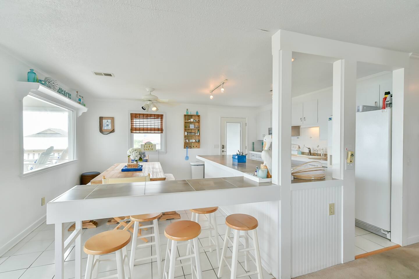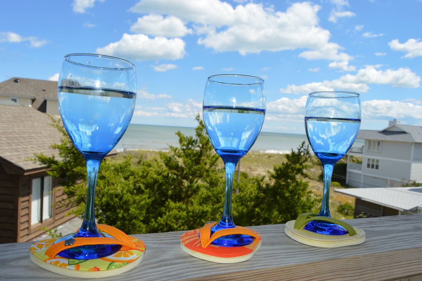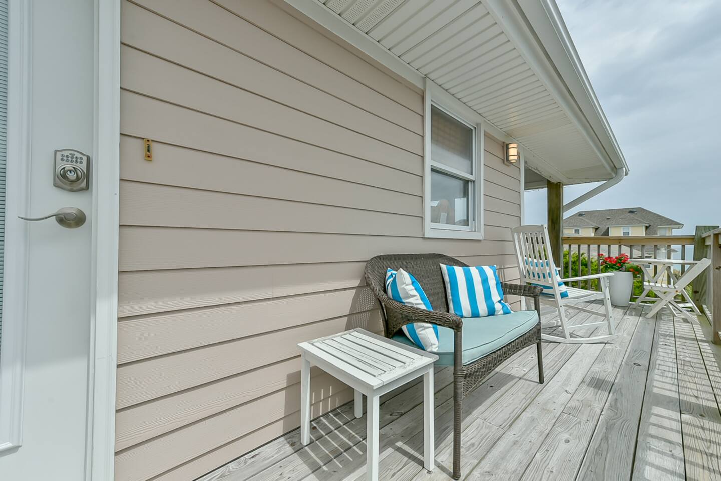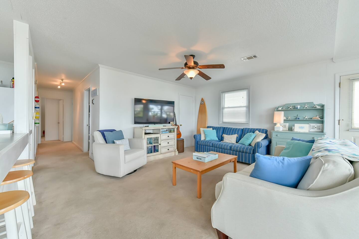 Our home's lot is the highest point on Wrightsville beach which allows for views of both the ocean as well as the sound. Friends call it the "Penthouse" as it takes up the entire top floor of our building. Given the height and elevation, the views are truly remarkable. Our home is located just off the main downtown Wrightsville strip with one of the more popular beach accesses just at the end of our road (~50 yards from our front door). In addition, the proximity to the main restaurants, bars, ice cream shops, local groceries, surf shops, and rental stores all within 100 yards makes this is the most convenient location on the island! We offer up to 3 parking spots for guests. Our home has one of the larger parking areas for a residential home in Wrightsville. It is shared with the 2 lower units, but we provide half of the lot marked with a "3" for our guests. Seamless entry with key-less front door code makes your arrival a breeze. The outdoor shower is refreshing and convenient, available for all guests to use, and we ask that you always rinse off your sandy feet at the hose or shower before entering the house! There are 3 well appointed bedrooms, two with queen beds and the third with a double and a bunk bed for up to 8 total guests, ideal for 2 couples with kids, a large family, or a group of friends. We offer a single memory foam mattress pad for additional sleeping arrangements. The linens are fresh, crisp, and beautifully created around coastal themes, and the pillows and mattresses are comfortable and protected with regularly updated protectors. The well stocked kitchen is ready for you to cook in, and some basics such as spices, olive oil, sugar, flour, etc are left for your use. We allow guests to use the grill - with great caution due to fire hazards - but ask that if you happen to finish the propane tank that you refill/replace it (convenience store to fill the tank is <5 minutes away). The bathrooms are stocked with some basic amenities including toilet tissue, soaps and 2 hairdryers, and there is a first aid kit in the main hallway bathroom closet. You have access to wifi and the living room TV is a smart TV with all the relevant streaming services for your convenience. You may also watch from the collection of DVDs, play games and do puzzles, or read and magazines books from our selection. Bring your personal items + some groceries and everything else is taken care of!