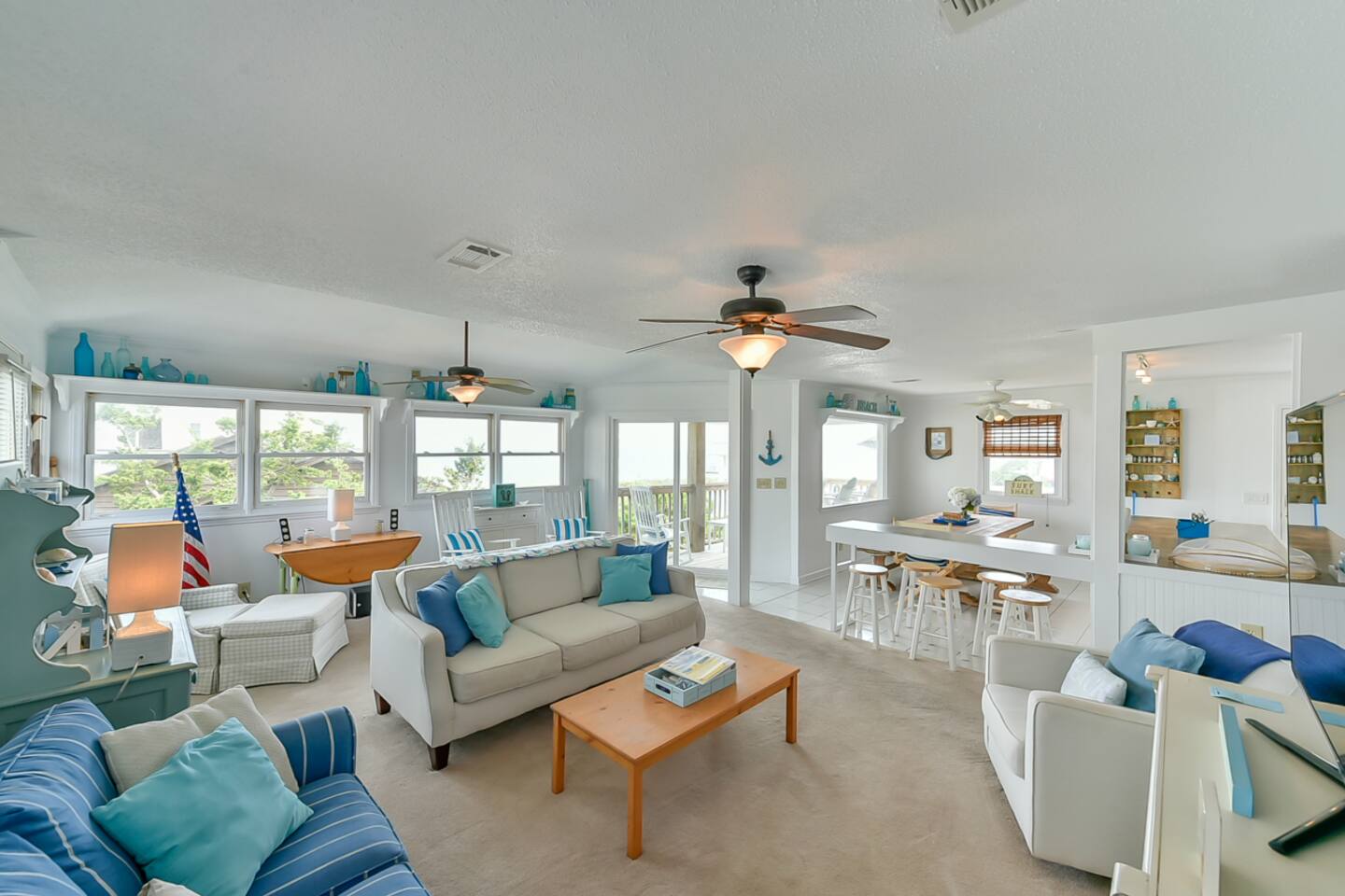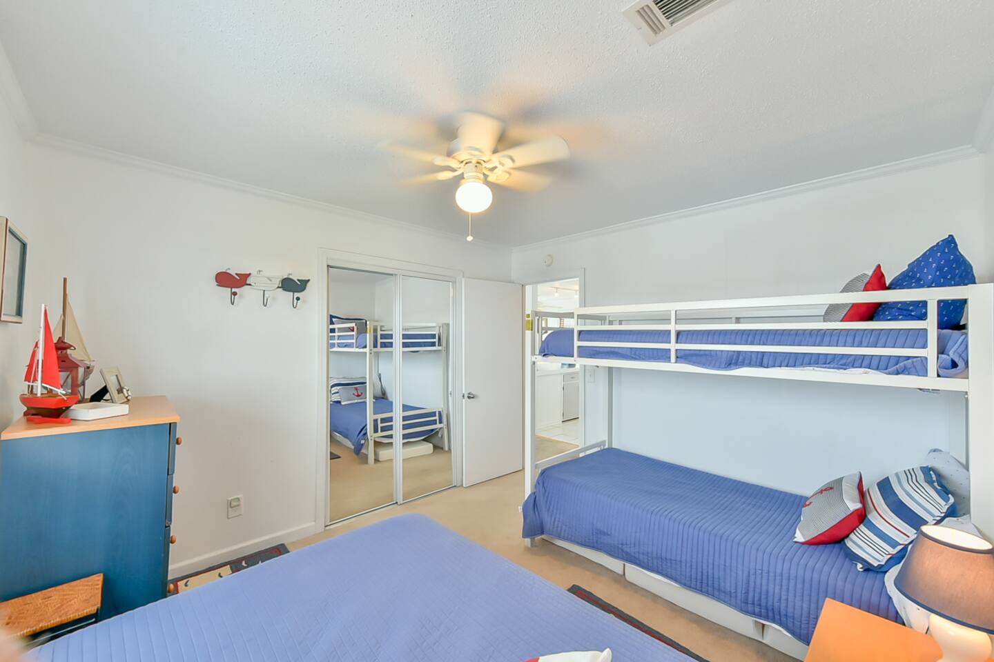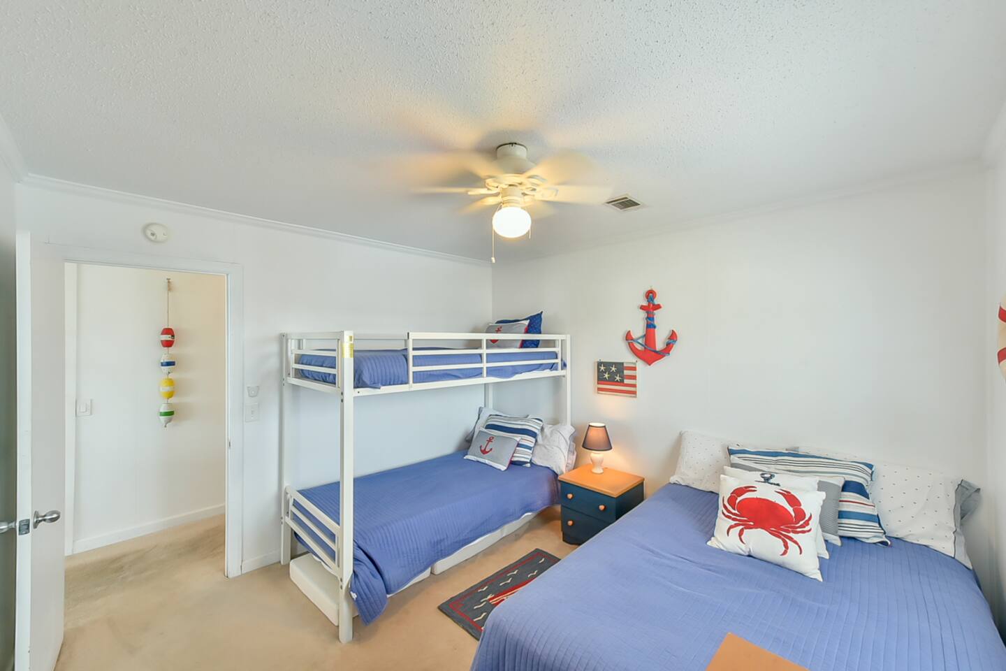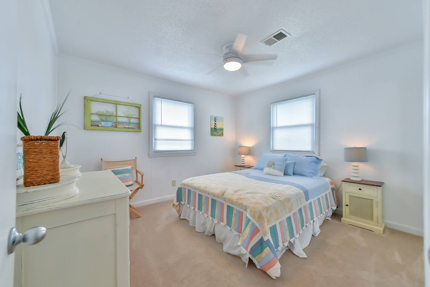 Our home's lot is the highest point on Wrightsville beach which allows for views of both the ocean as well as the sound. Friends call it the "Penthouse" as it takes up the entire top floor of our building. Given the height and elevation, the views are truly remarkable. Our home is located just off the main downtown Wrightsville strip with one of the more popular beach accesses just at the end of our road (~50 yards from our front door). In addition, the proximity to the main restaurants, bars, ice cream shops, local groceries, surf shops, and rental stores all within 100 yards makes this is the most convenient location on the island! We offer up to 3 parking spots for guests. Our home has one of the larger parking areas for a residential home in Wrightsville. It is shared with the 2 lower units, but we provide half of the lot marked with a "3" for our guests. Seamless entry with key-less front door code makes your arrival a breeze. The outdoor shower is refreshing and convenient, available for all guests to use, and we ask that you always rinse off your sandy feet at the hose or shower before entering the house! There are 3 well appointed bedrooms, two with queen beds and the third with a double and a bunk bed for up to 8 total guests, ideal for 2 couples with kids, a large family, or a group of friends. We offer a single memory foam mattress pad for additional sleeping arrangements. The linens are fresh, crisp, and beautifully created around coastal themes, and the pillows and mattresses are comfortable and protected with regularly updated protectors. The well stocked kitchen is ready for you to cook in, and some basics such as spices, olive oil, sugar, flour, etc are left for your use. We allow guests to use the grill - with great caution due to fire hazards - but ask that if you happen to finish the propane tank that you refill/replace it (convenience store to fill the tank is <5 minutes away). The bathrooms are stocked with some basic amenities including toilet tissue, soaps and 2 hairdryers, and there is a first aid kit in the main hallway bathroom closet. You have access to wifi and the living room TV is a smart TV with all the relevant streaming services for your convenience. You may also watch from the collection of DVDs, play games and do puzzles, or read and magazines books from our selection. Bring your personal items + some groceries and everything else is taken care of!