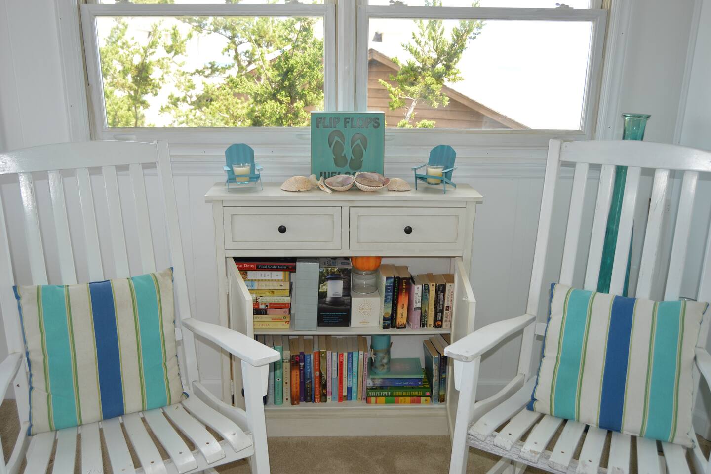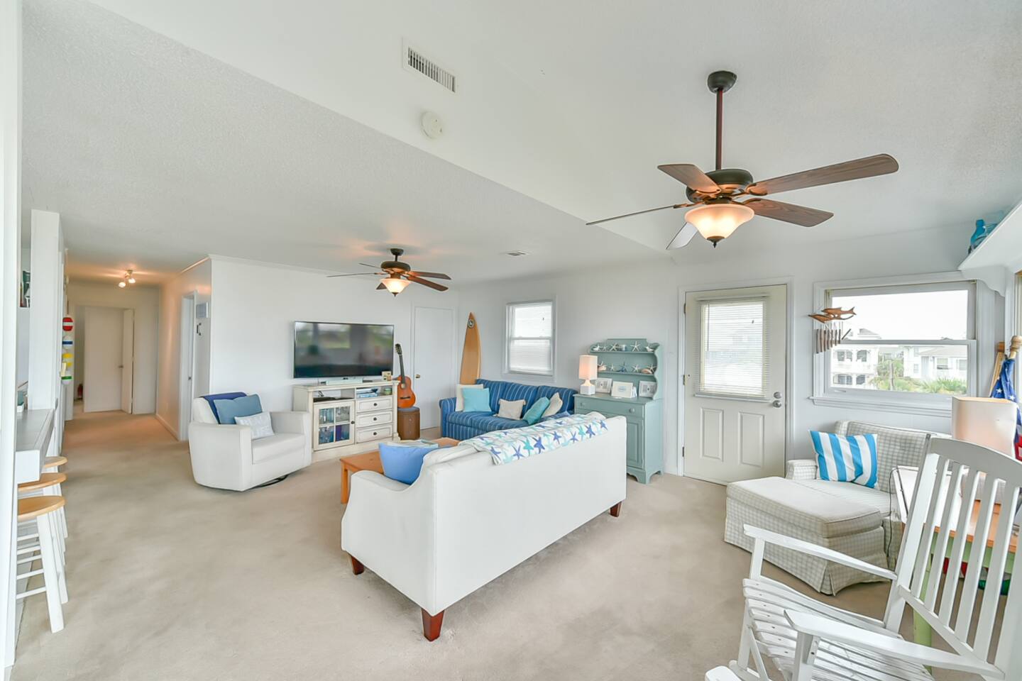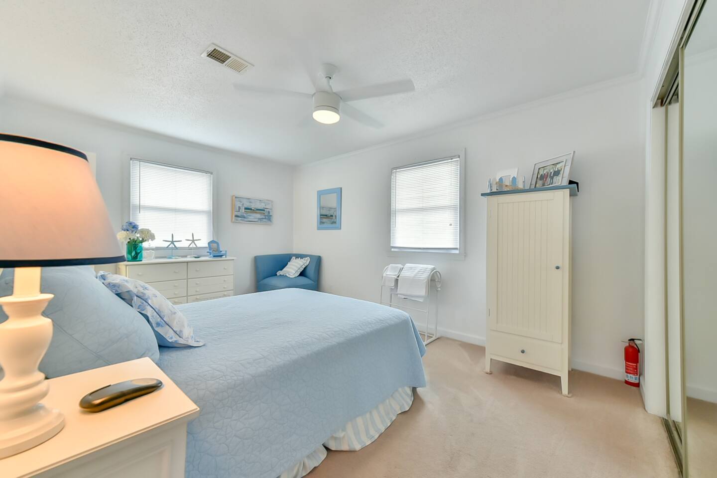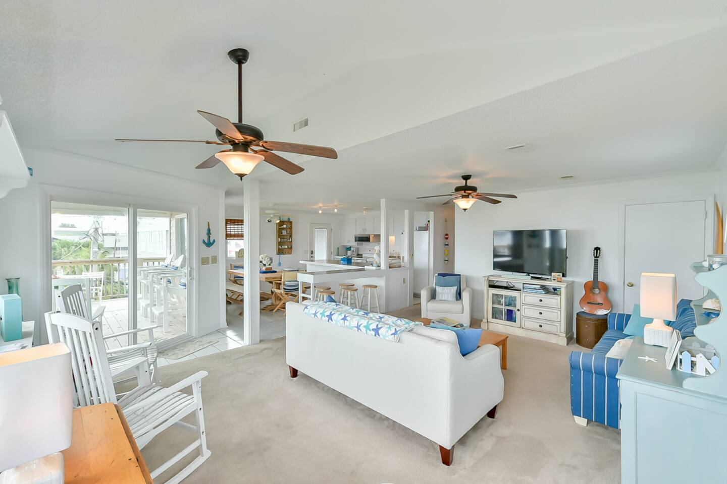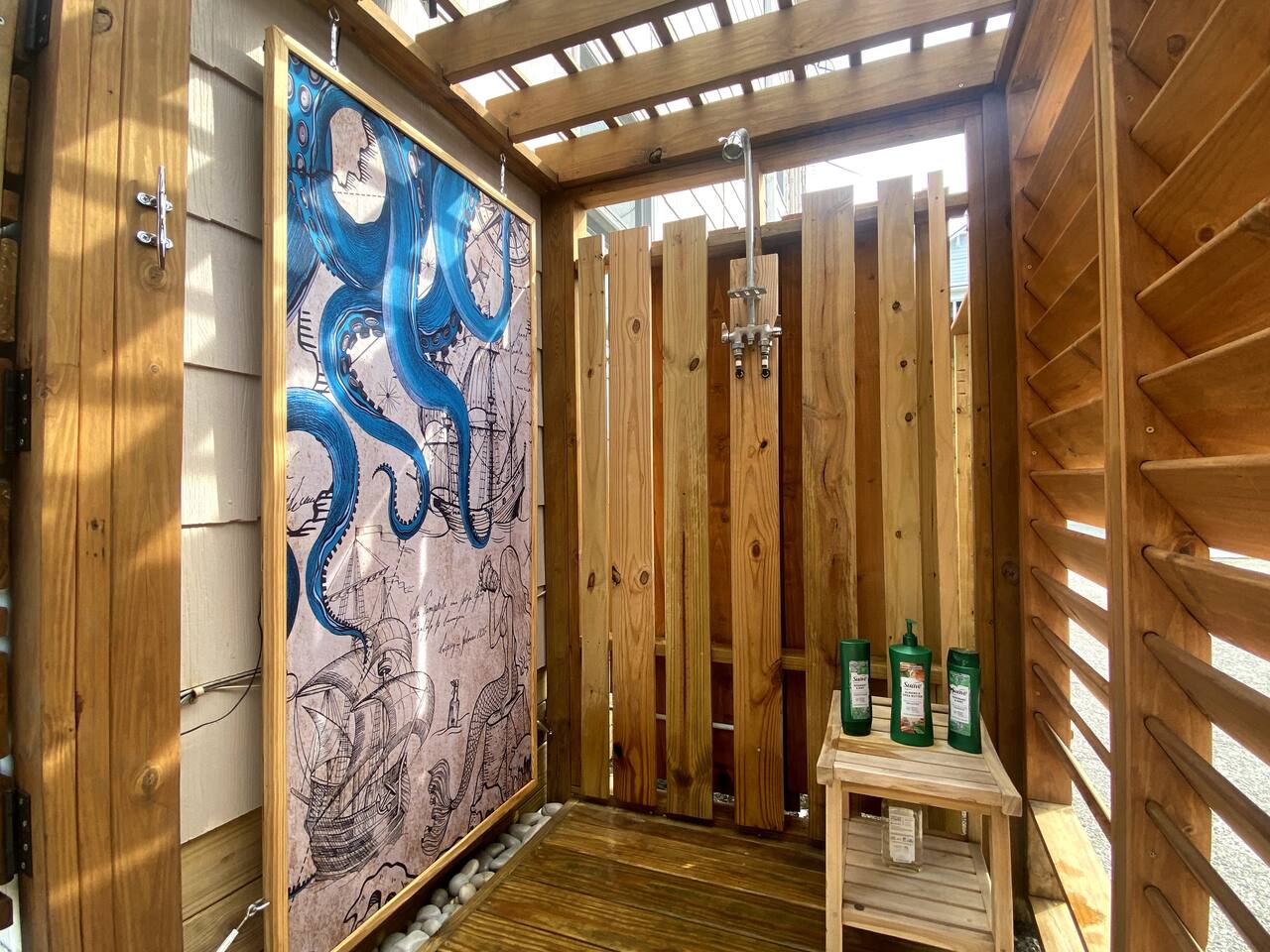 Our home's lot is the highest point on Wrightsville beach which allows for views of both the ocean as well as the sound. Friends call it the "Penthouse" as it takes up the entire top floor of our building. Given the height and elevation, the views are truly remarkable. Our home is located just off the main downtown Wrightsville strip with one of the more popular beach accesses just at the end of our road (~50 yards from our front door). In addition, the proximity to the main restaurants, bars, ice cream shops, local groceries, surf shops, and rental stores all within 100 yards makes this is the most convenient location on the island! We offer up to 3 parking spots for guests. Our home has one of the larger parking areas for a residential home in Wrightsville. It is shared with the 2 lower units, but we provide half of the lot marked with a "3" for our guests. Seamless entry with key-less front door code makes your arrival a breeze. The outdoor shower is refreshing and convenient, available for all guests to use, and we ask that you always rinse off your sandy feet at the hose or shower before entering the house! There are 3 well appointed bedrooms, two with queen beds and the third with a double and a bunk bed for up to 8 total guests, ideal for 2 couples with kids, a large family, or a group of friends. We offer a single memory foam mattress pad for additional sleeping arrangements. The linens are fresh, crisp, and beautifully created around coastal themes, and the pillows and mattresses are comfortable and protected with regularly updated protectors. The well stocked kitchen is ready for you to cook in, and some basics such as spices, olive oil, sugar, flour, etc are left for your use. We allow guests to use the grill - with great caution due to fire hazards - but ask that if you happen to finish the propane tank that you refill/replace it (convenience store to fill the tank is <5 minutes away). The bathrooms are stocked with some basic amenities including toilet tissue, soaps and 2 hairdryers, and there is a first aid kit in the main hallway bathroom closet. You have access to wifi and the living room TV is a smart TV with all the relevant streaming services for your convenience. You may also watch from the collection of DVDs, play games and do puzzles, or read and magazines books from our selection. Bring your personal items + some groceries and everything else is taken care of!